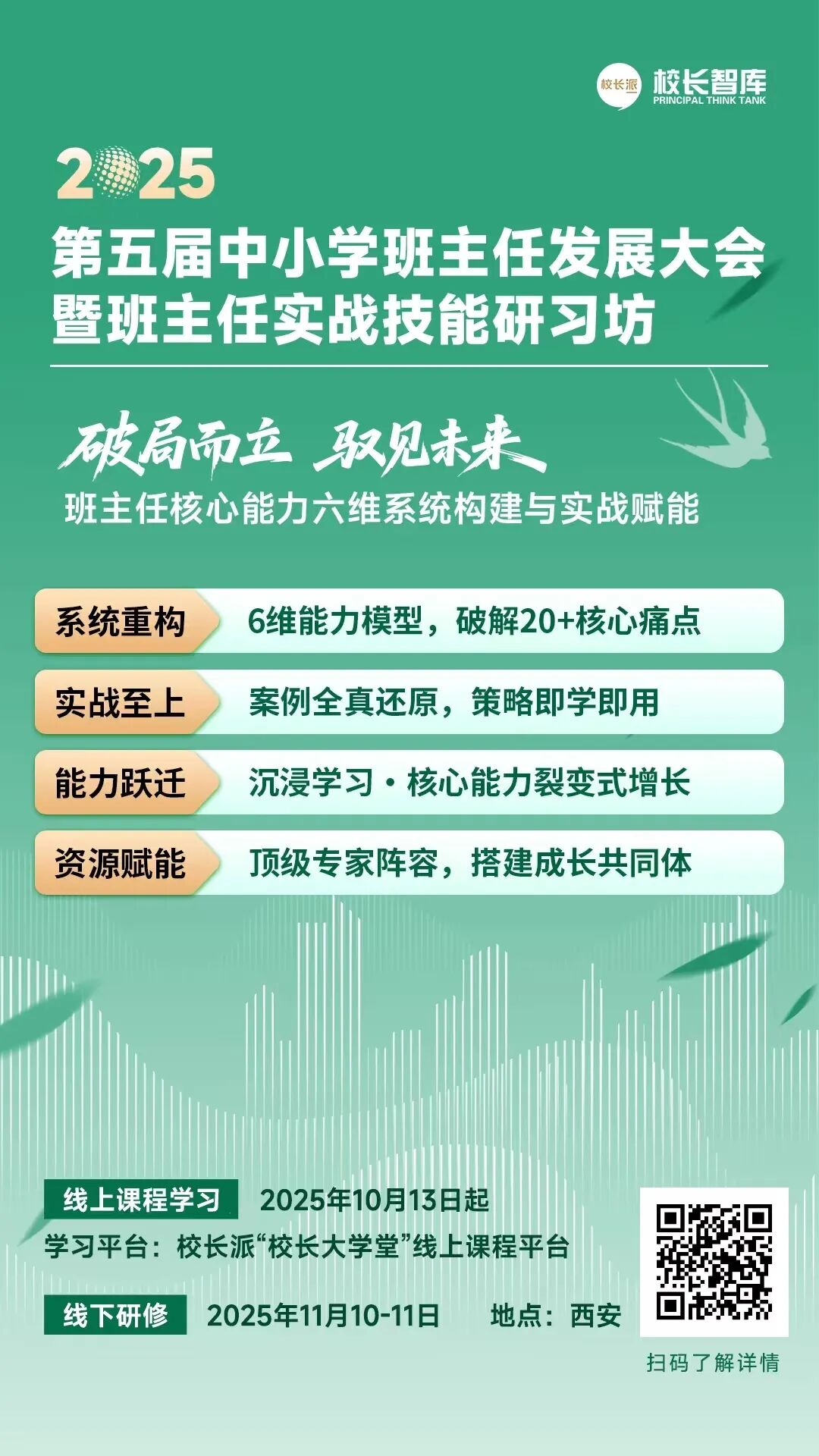 教育变革浪潮奔涌,“双减”深化、新课标落地、AI技术赋能与冲击并存,时代对中小学班主任提出了前所未有的高要求。学生心理问题频发、家校沟通矛盾凸显、突发事件应对压力骤增……班主任早已不再是传统的班级管理者,而是需要同时扮演心理辅导师、危机处理专家、家校关系协调者、活动策划师、团队领导者等多重角色的复合型育人专家。