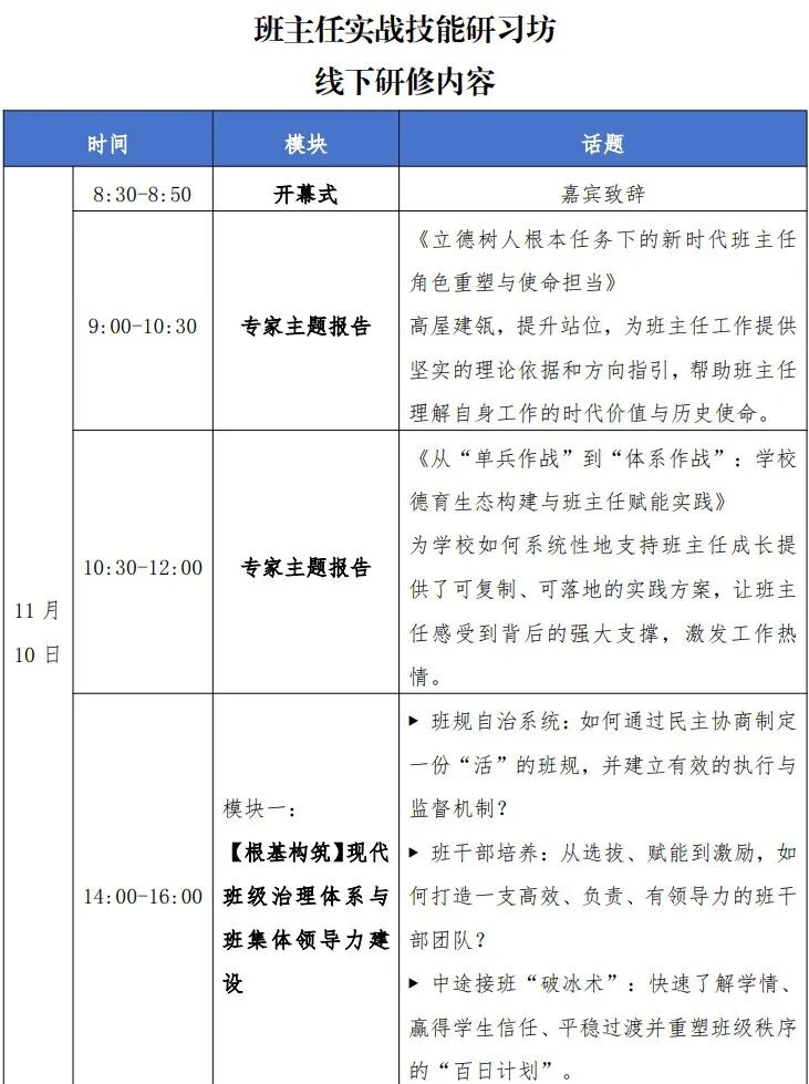 (一)主题报告:由全国知名德育专家、心理学家、名班主任进行专题报告,高屋建瓴,提供理论支撑与方向指引。