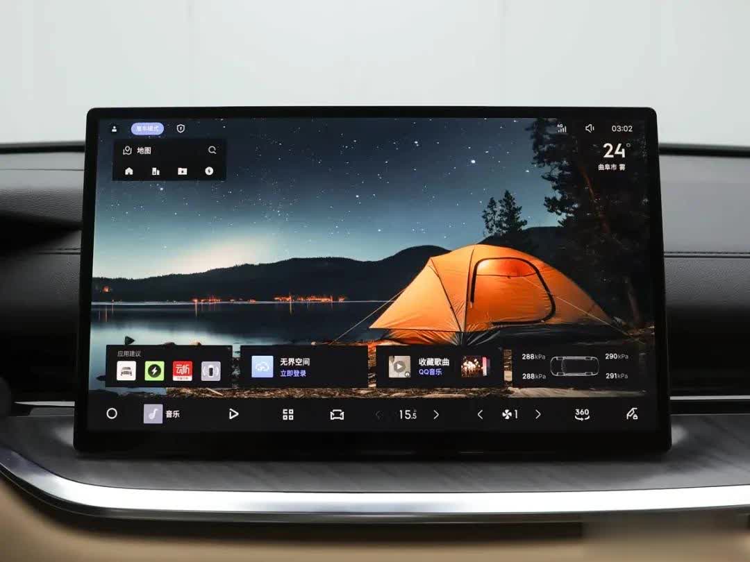 吉利银河星耀6的车机系统为Flyme Auto智能座舱,娱乐功能丰富,自带QQ音乐、爱奇艺和高德地图等常用应用,还支持HUAWEI HiCar和Carlink等车手互联功能,车机采用7nm龍鹰一号自研车规级芯片。配置方面,诸如50W无线快充、头等舱棉花糖0压座椅、前排座椅通风/加热、可开启的天窗等配置均有提供。