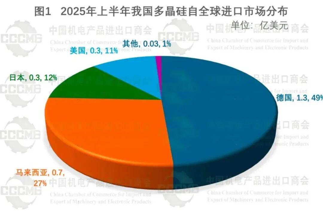 而相较于光伏产品的出口,进口商品集中于这类光伏上游原材料产品,规模小得多,且主要进口来源地中也不包含印度,以德国、马来西亚、日本、美国为主。